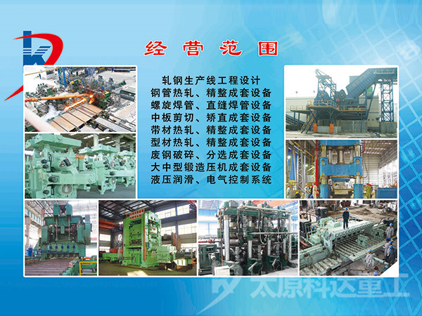 自公司成立以來已取得了多項(xiàng)工程設(shè)計(jì)業(yè)績(jī)。河北滄州力通聯(lián)無縫鋼管有限公司φ219無縫鋼管工程工廠設(shè)計(jì);力通聯(lián)無縫鋼管有限公司φ273熱處理線工廠設(shè)計(jì)及設(shè)備設(shè)計(jì)供貨;江蘇常寶普萊森φ140無縫鋼管工程工廠設(shè)計(jì)及設(shè)備設(shè)計(jì)供貨;江蘇常寶150三輥穿孔機(jī)、12機(jī)架微張力減徑機(jī)、高精度十輥矯直機(jī)、鍋爐管精整區(qū)域自動(dòng)生產(chǎn)線、AVS打頭機(jī)、雙線三線五線系列自動(dòng)冷拔機(jī)等工藝成套設(shè)計(jì)供貨;磐石鋼管有限責(zé)任公司90熱軋生產(chǎn)線工廠設(shè)計(jì)供貨等。