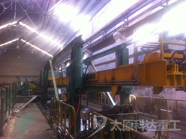 工藝流程:毛管成捆吊至上料平臺(tái),上料裝置根據(jù)拉拔模式自動(dòng)取料放入冷撥機(jī)穿棒平臺(tái),穿入(芯棒)裝置自動(dòng)將待冷撥的鋼管穿入芯棒,芯棒臺(tái)下降,芯棒和鋼管同時(shí)前進(jìn)到撥管工位,撥制小車鉗口夾住伸出??椎匿摴茴^部,小車低速啟動(dòng)-高速拔制-低速脫管,撥制結(jié)束后,撥制力消失,下料臂擺出下料,撥制小車高速返回原位,進(jìn)行下一次夾料撥制。